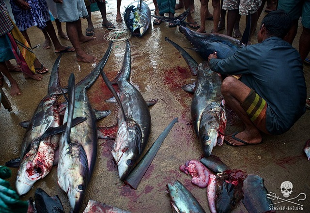 Living in Hong Kong, I’ve been dealing with the shark fin issue for as long as I can remember, long before joining Sea Shepherd. I’ve walked through blood-soaked markets and clambered over rickety rooftops around South East Asia in a quest to uncover, expose and better understand the evil trade. Hong Kong is at the epicenter of the global trade in shark fins and many other “delicacies of the sea.”