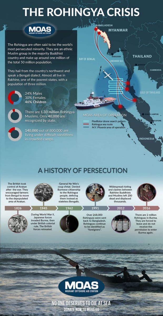 Supporting MOAS onboard M.Y. Phoenix will be two other NGOs. Malta-based NGO MigrantReport.org, a news organization that focuses on migration issues, will be providing information through its ground networks. Fortify Rights, a human rights organization based in South East Asia with experience working closely with refugee communities in the region, will manage data collection and documentation as well as provide contextual guidance.