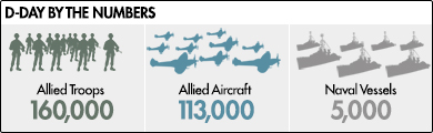 On the morning of June 5, 1944, U.S. General Dwight D. Eisenhower, the supreme commander of Allied forces in Europe gave the go-ahead for Operation Overlord, the largest amphibious military operation in history. On his orders, 6,000 landing craft, ships and other vessels carrying 176,000 troops began to leave England for the trip to France. That night, 822 aircraft filled with parachutists headed for drop zones in Normandy. An additional 13,000 aircraft were mobilized to provide air cover and support for the invasion.