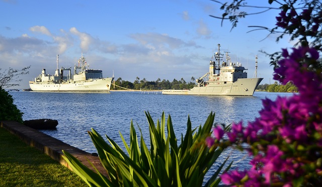 Her Majesty's Canadian Ship (HMCS) Protecteur, guided-missile cruiser USS Chosin (CG 65) and fleet ocean tug USNS Sioux (T-ATF-175) arrived at Pearl Harbor safely on March 6th, following recovery efforts led by the U.S. Navy after a fire aboard the Canadian ship last week.