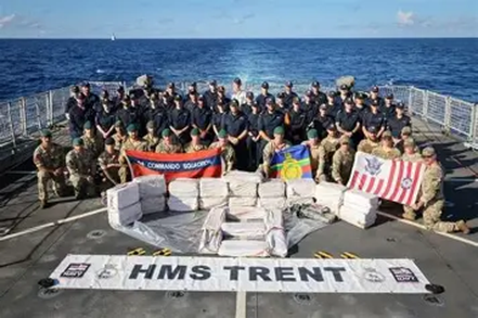 Haul from a $267M joint US-UK drug seizure displayed on board HMS Trent (UK MoD)