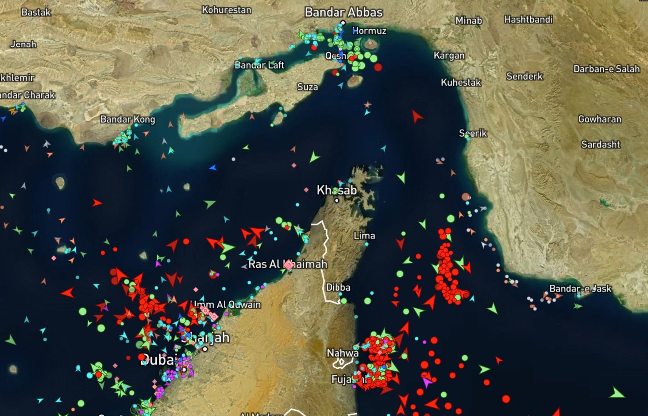 But on March 1, AIS data showed the area of the TSS largely devoid of traffic, with heavy concentrations of vessels at anchor off Dubai and Khor Fakkan, on the approaches to the west and east sides of the TSS (respectively).