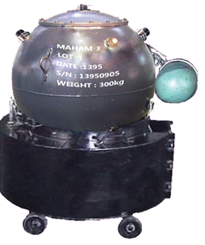 An Iranian Maham-3 moored mine sitting on its dispenser (IRGC Navy)