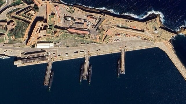 Algerian Navy Kilo Class submarines alongside at their base in Mers al Kebir, March 2025 (Google Earth/Airbus)