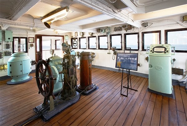 Visitors to the ship see various exhibits and can tour spaces including the bridge, captain’s office, the first class lounge, a deluxe cabin, a third class cabin, and the engine room. Exterior deck spaces are also accessible. The company says it authentically showcases the shipbuilding technology and interior decoration of the time, and as such, remains an important icon of the past.