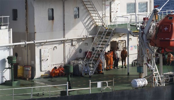 The statement from the Pentagon showed U.S. troops boarding the tanker from a helicopter. A later picture shows the crew gathered on deck.