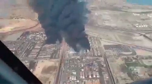 Fires burning in the Rajaei Port container park days after the explosion on April 26 (https://x.com/i/status/1930786589665267956)