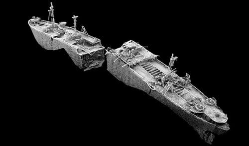 Rendering of the wreck based on multibeam and laser data from the 2013 survey report (MCA)