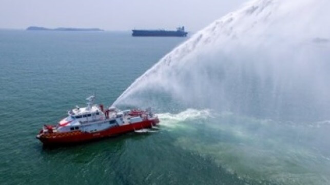 With the BMT-proven mono-hull aluminum design, the optimized vessels with superior seakeeping characteristics can speed up more than 30 knots. The extended external fire-fighting capability is designed to be fully redundant with three monitors and three pumps interconnected with a total discharge flow rate of 3600m3/hr with 12,000 liters of foam capacity and a self-protection water curtain. The larger aluminum superstructure allows for a greater size firefighting equipment store, decontamination room with chemical, biological, and radiological (CBR) protection, first aid room and a rescue passenger lounge for 30 survivors and 8 firefighters.