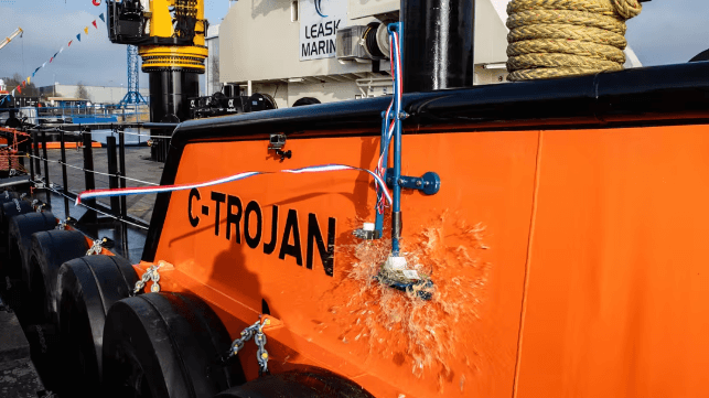 Damen Shipyards Group has delivered a Multi Cat (MuC) 3113 to Leask Marine. The vessel was named C-Trojan in a handover ceremony at Damen Shipyards Hardinxveld’s location in the Netherlands. The MuC 3113 is a highly versatile vessel, purpose-built for Leask Marine’s requirements.