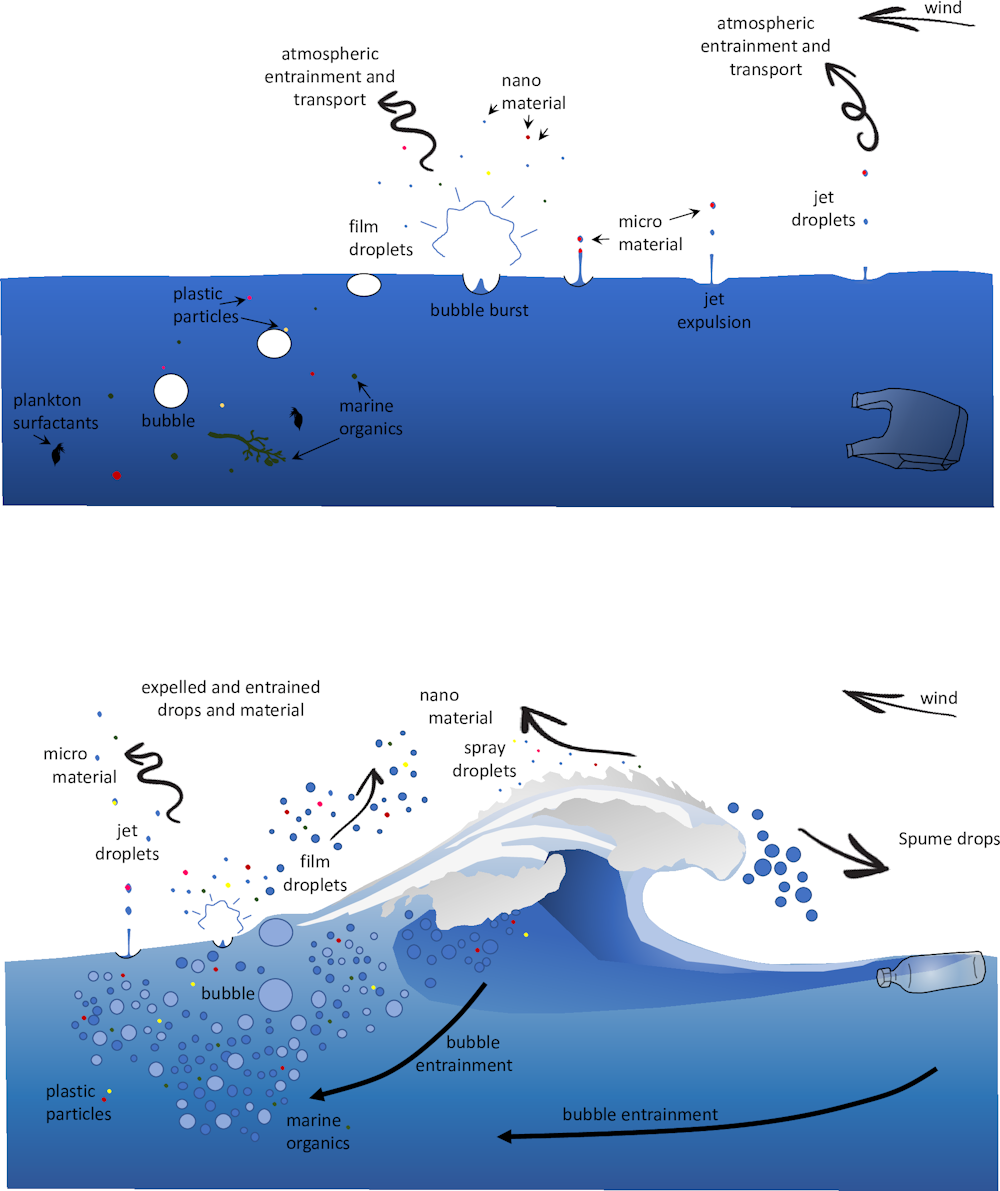 Scientists estimate the oceans contain many trillions of plastic particles, which get there through runoff, wastewater or settling from the air. Ocean waves can release these particles into the air.