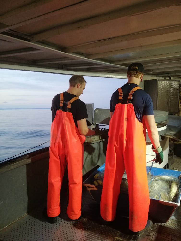 Carson (left) and Landon Minor (right) pull nets from the eastern waters of Lake Erie. Most of the perch, pickerel, and other species they catch on their quota are eaten within 250 kilometres of the Great Lakes. (Hannah Harrison), Author provided