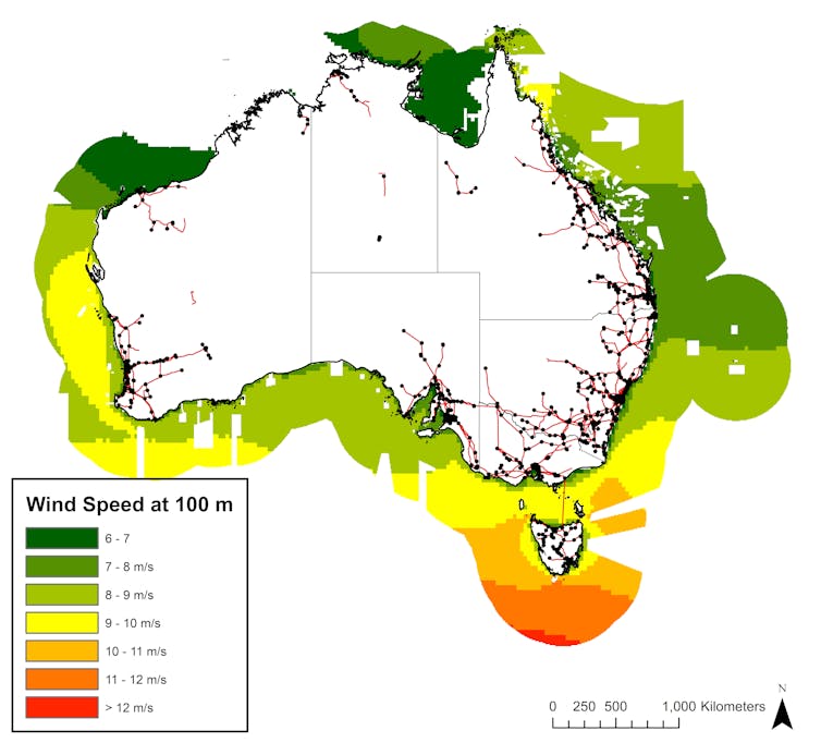 But recent changes are producing new opportunities for Australia. The development of larger turbines has created economies of scale which reduce technology costs. And floating turbine foundations, which can operate in very deep waters, open access to more windy offshore locations.