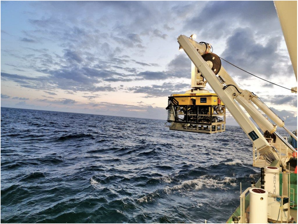 The remotely operated submersible Holland 1 is lowered down from the research vessel Celtic Explorer. Aaron Lim, Author provided