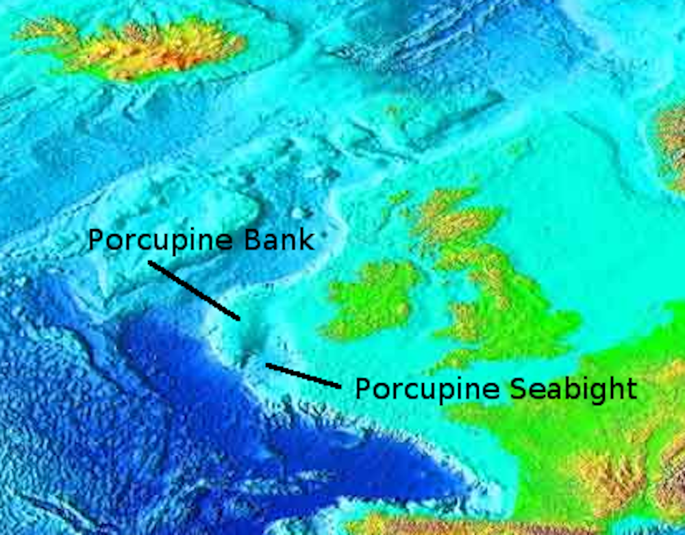 Porcupine Bank is found 230 miles south west of Ireland. CIreland / NOAA