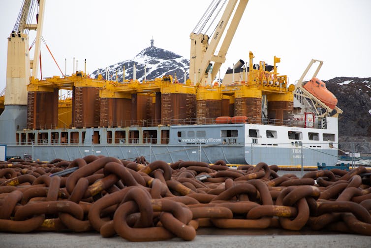 The mooring chain for a floating wind turbine at Polarbase, Hammerfest, Norway. Øyvind Gravås and Even Kleppa/Equinor, CC BY-NC-ND