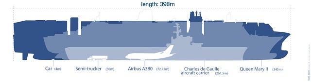 • Longer than four football fields or 5.5 A380 Airbus planes.