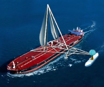 Not content, he had the idea to transform the Tridactyl into the Cargoproa concept that could be used for the propulsion of cargo and tanker vessels on the trans-ocean portion of their voyage under pure sail power. Another provisional patent was submitted. Design and construction of a 24 foot scale model Cargoproa was initiated, but progress was slow. The plan was to complete the construction of the model Cargoproa and test it at the Massachusetts Maritime Academy in April 2012.