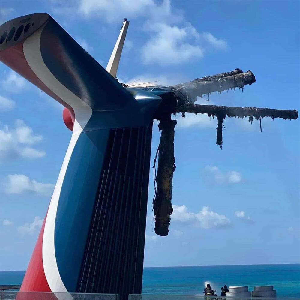 To expedite the return of the cruise ships to service, Carnival working with Grand Bahama, removed the wings from the funnel and placed a new grill work along the top. They repositioned the engines' exhausts, repaired grill work along the rear of the funnel, and repainted it. However, the cruise ship returns to service without its signature "whale tail."