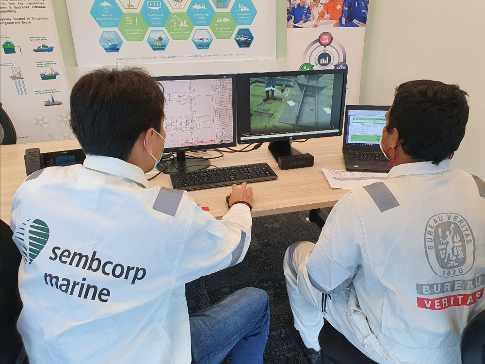 Sembcorp Marine and BV performing a real time remote survey with the on-site quality control team