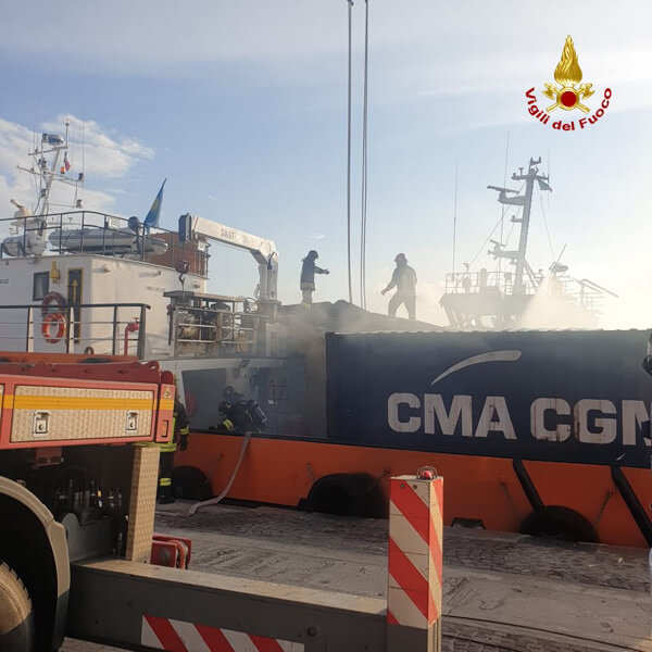 Fire brigades and medical teams rushed to the scene and images show black smoke coming from the stern of the vessel after the explosion. The fire took approximately two hours to extinguish. Images from the fire department show them removing damaged containers.