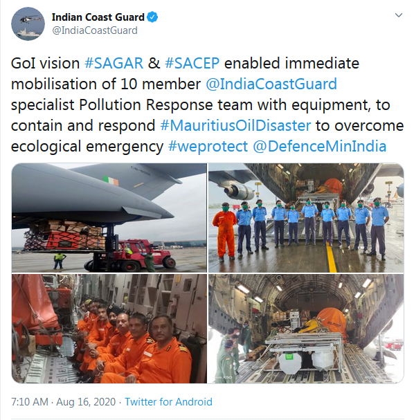 Tweet from one of France's ministers who is providing assistance to Mauritius with the environmental disaster