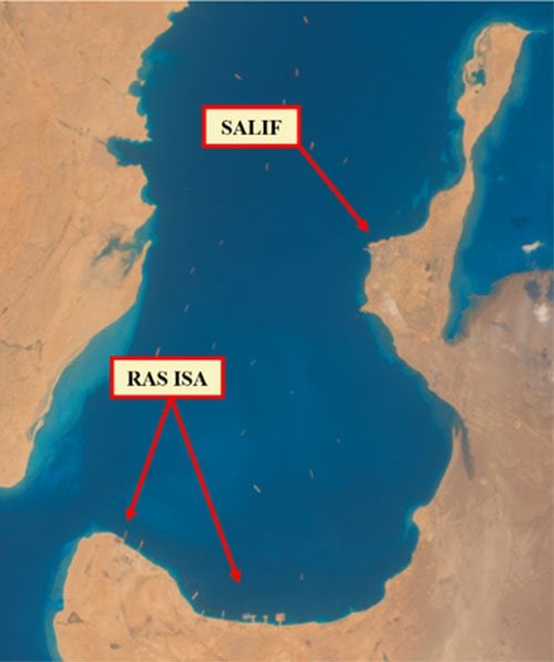 Until recently, Ras Isa was a very rudimentary port that only handled oil product tankers. Small to medium-sized tankers were typically moored with sterns towards the beach. Flexible piping was then used directly from ships and hauled across the beach into a limited fixed pipeline network connecting into a small nearby tank farm.