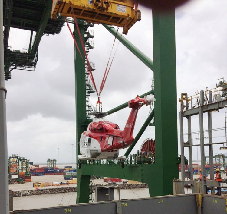 Recently, we shipped a helicopter from Nhava Sheva to London Gateway. Look at the interesting lifting apparatus. The same has been used for loading and discharging at each respective end.