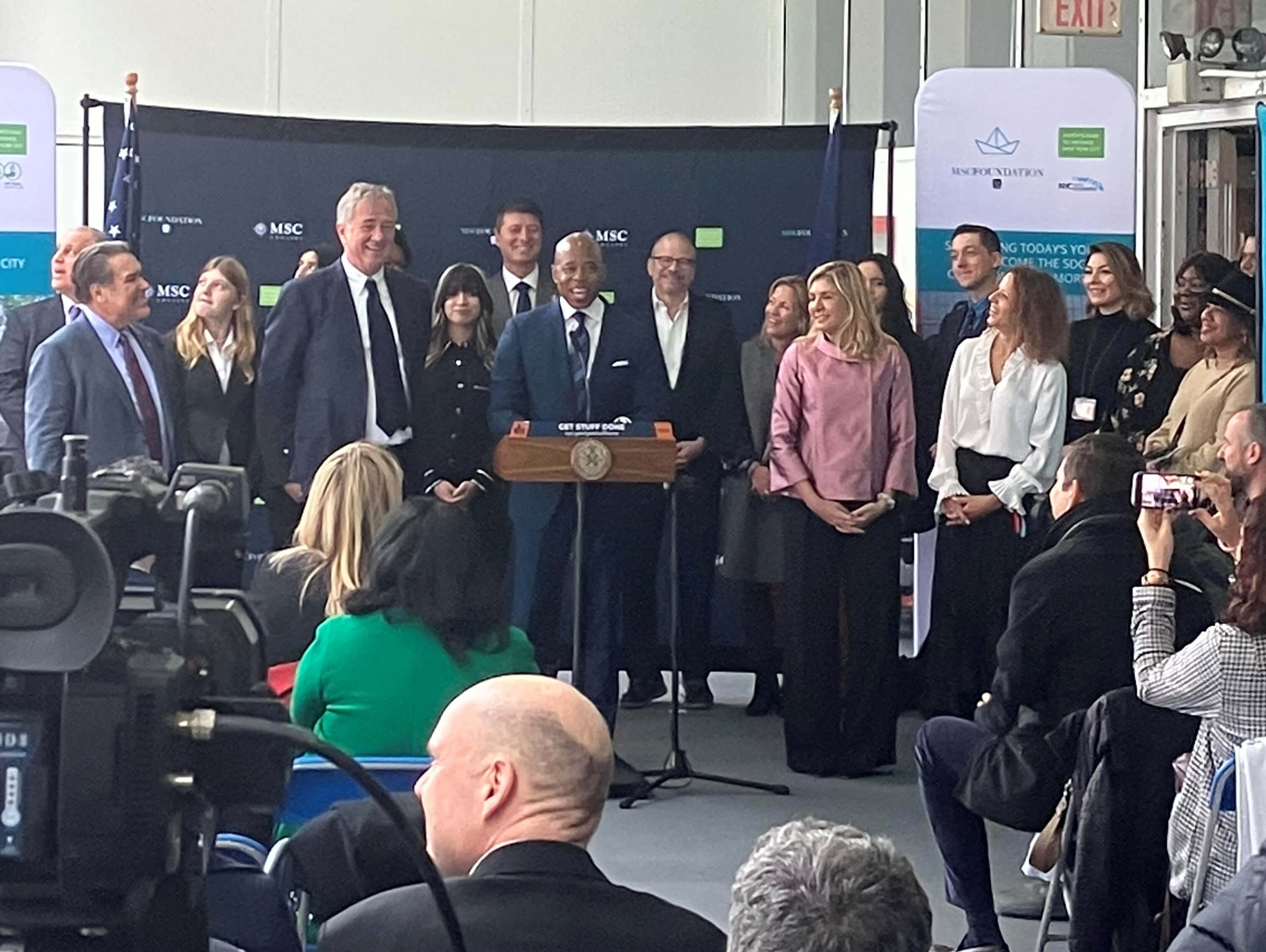NYC Mayor Eric Adams welcoming MSC to New York City (Allan Jordan)