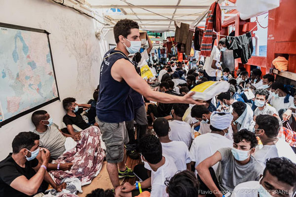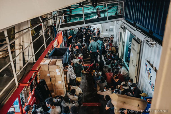 Migrants crammed aboard the Ocean Viking (SOS Mediterranee)