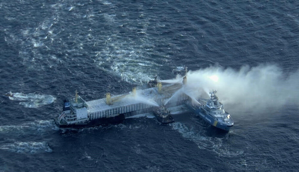 So far, the Coast Guard reports that the fire has been contained to the cargo and they believe it has not impacted the structure of the vessel. Overnight on Saturday, they requested two helicopters from the Swedish Civil Contingences Agency. The helicopters joined the mission on Sunday dropping water on the fire but were later forced to stop their overflights due to the windy conditions. The agency said that the windy conditions were reducing the effects of the efforts to extinguish the fire and could jeopardize flight safety. The helicopters were standing by in hopes of resuming the flights on Monday.