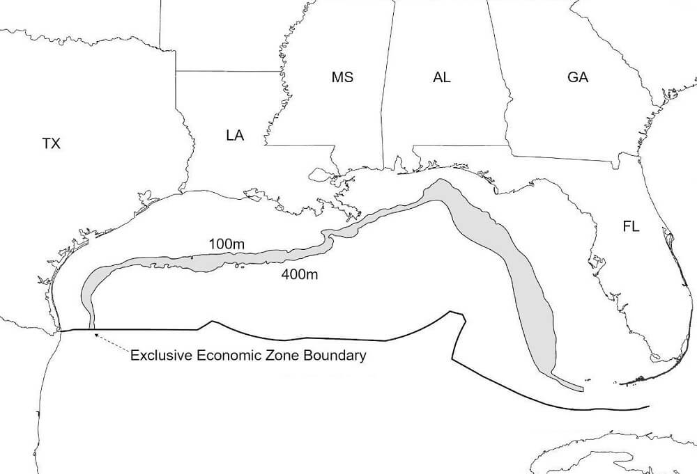 A broad range of maritime stakeholders could be affected by regulatory action to protect the species. In a recent rulemaking proposal, the National Oceanic and Atmospheric Administration laid out plans for a "critical habitat" zone between the 100 meter and 400 meter depth contours throughout the U.S. Gulf of Mexico. These contours run parallel to the coast where the shelf begins to drop off, creating a thin line along the edge of the U.S. Gulf - effectively dividing all Gulf seaports from the offshore oilpatch and the open ocean.