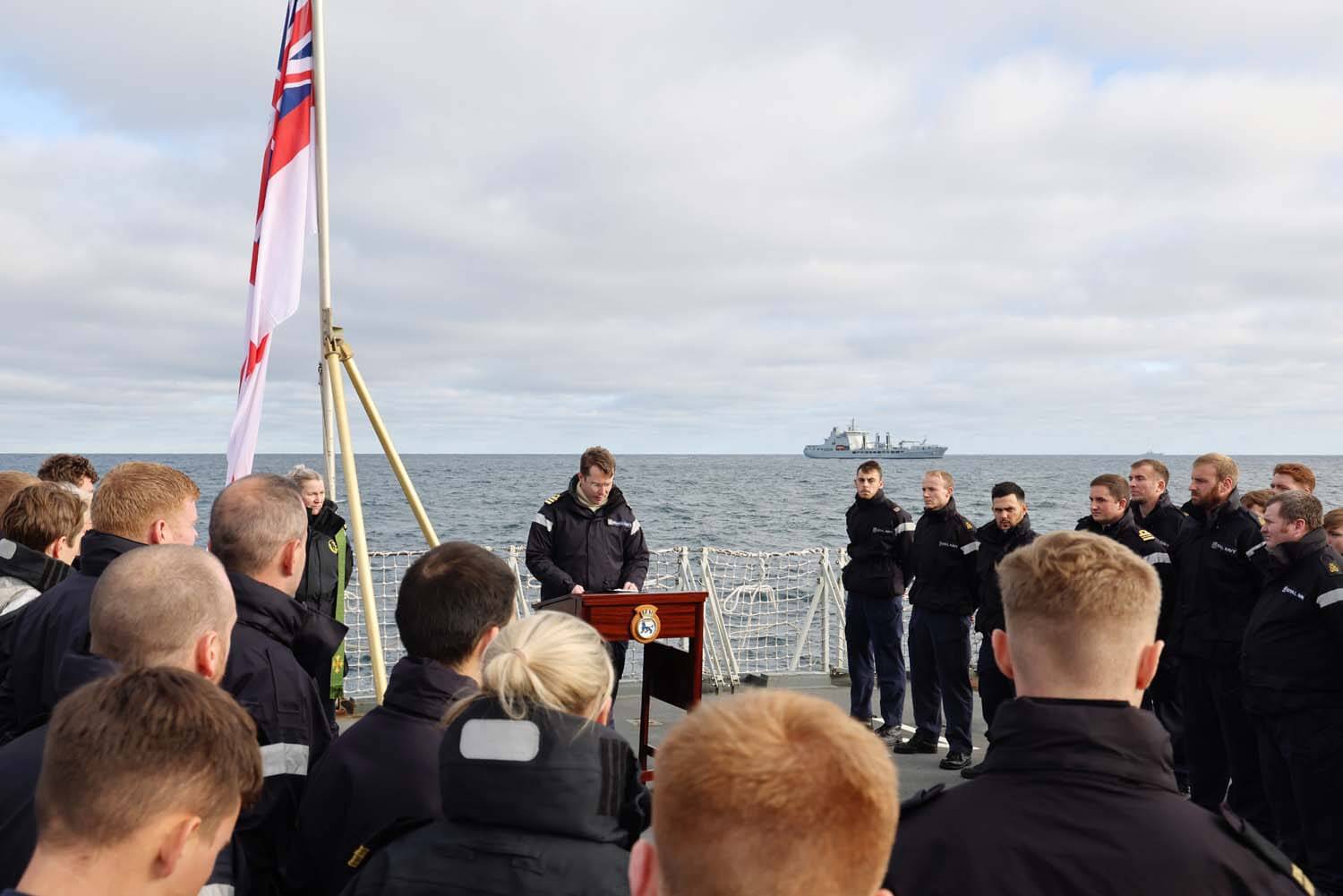 The commemoration took place on Northumberland’s flight deck and was led by the commanding officer, Commander Will Edwards-Bannon, and HNoMS Thor Heyerdahl’s chaplain.