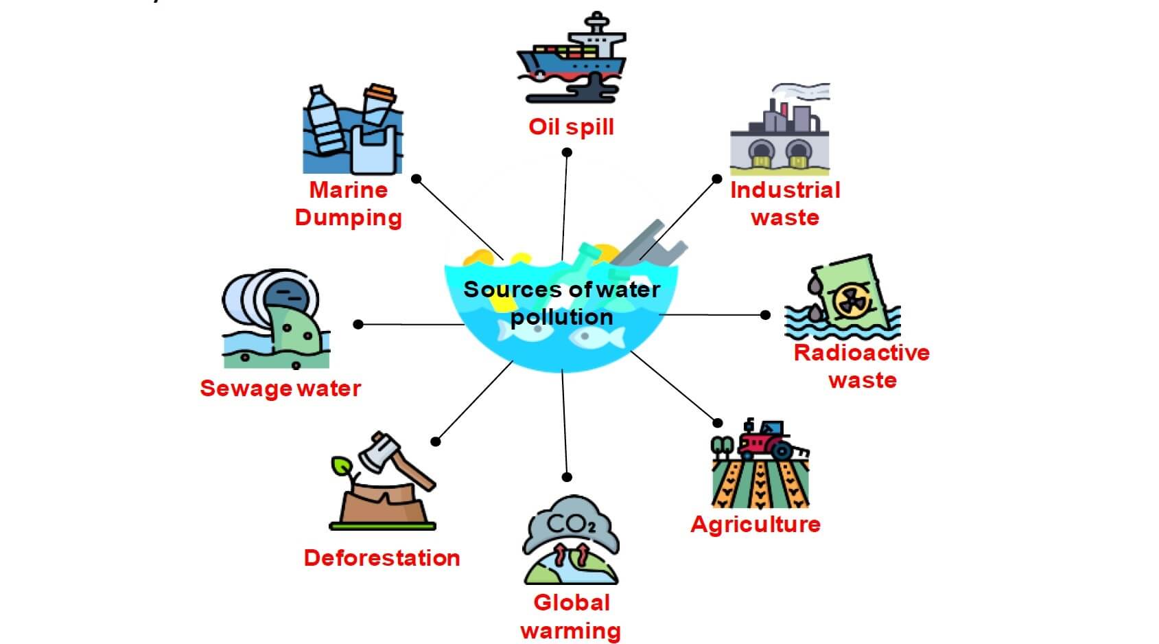 Figure 1 Anthropogenic causes of water pollution. The figure was created using free icons available from Flaticon at: www.flaticon.com