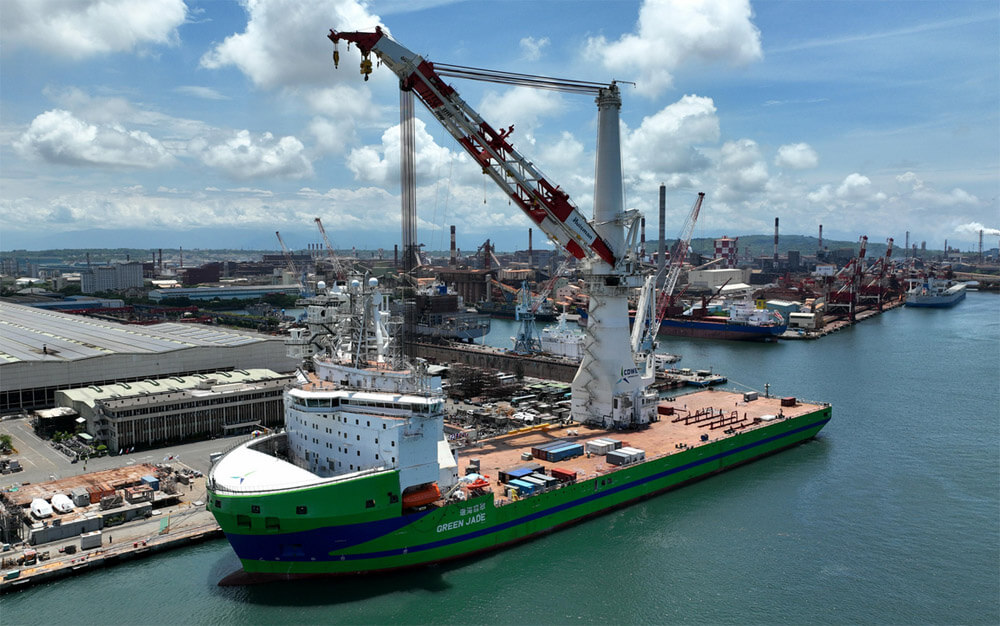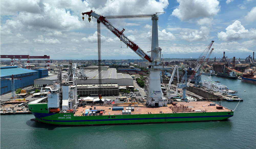 CSBC highlights numerous challenges during the construction of the vessel. Green Jade is more than seven months behind the originally anticipated schedule in part due to the effects of the COVID-19 pandemic. The shipyard reports problems obtaining raw materials and price surges, European regulations, technical difficulties, exchange rate issues, and manpower shortages, as well as the challenges of a first-time construction. In addition to being the second largest wind power crane ship, they are saying Green Jade is also the most expensive commercial ship in the history of Taiwanese shipping. The shipyard is calling her the largest and most complex vessel that they ever built.