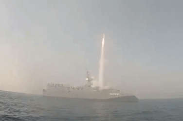 Shahid Soleimani (FS313-01) firing a Navab anti-aircraft missile from a forward vertical launch tube (Iranian Ministry of Defense)