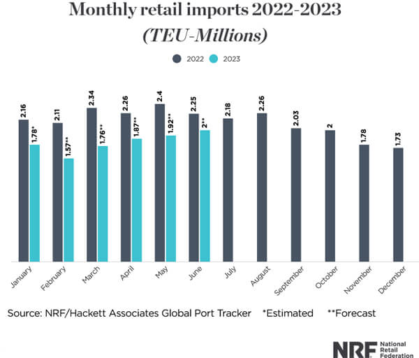 “February is traditionally a slow month, but these are the lowest numbers we’ve seen in almost three years. Retailers are being cautious as they wait to see how the economy responds to efforts to bring inflation under control,” said Jonathan Gold, NRF Vice President for Supply Chain and Customs Policy. “With the U.S. economy slowing and consumers worried by rising interest rates and still-high inflation, retailers are importing less merchandise.”