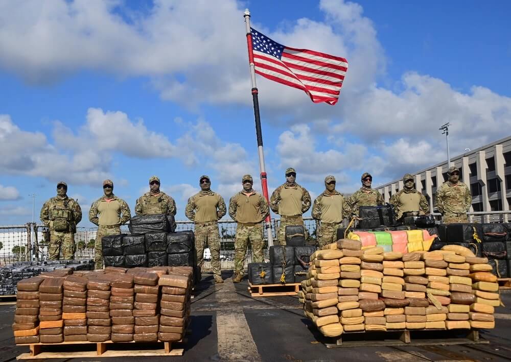 Multiple agencies and nations provide vessel platforms for counternarcotics operations in the busy drug trafficking zones of U.S. Southern Command, including the U.S. Navy, the Royal Canadian Navy and the Royal Navy. Boardings conducted by the internatonal partnership are always performed by coastguardsmen, who have law enforcement authority to carry out searches and arrests aboard stateless vessels.