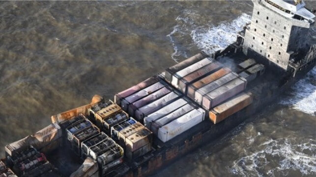 HM Coastguard reported on Friday that the situation aboard both vessels remained stable as salvage teams were planning for the next steps. They said that small periodic pockets of fire continued on the Solong, which “are not causing undue concern.” The containership continues to be held in position by a tow line while the tanker has remained at anchor where it was struck on Monday.
