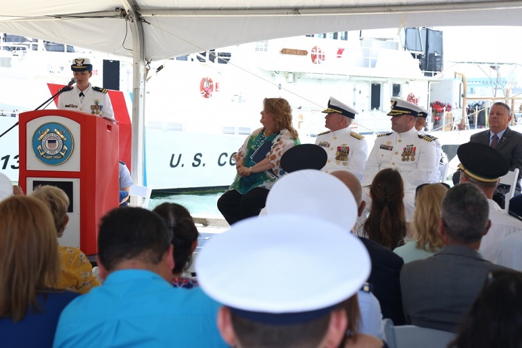 Congresswoman Jennifer González-Colón participates as the cutter's sponsor during the commissioning ceremony. "Puerto Rico is now the sector in the Coast Guard with the largest number of fast response cutters," said González-Colón. "I’m honored to be the ship’s sponsor of this beautiful cutter and that it is also commanded by a woman. This is part of the work we do in collaboration with the Coast Guard, and other agencies, so Puerto Rico can have the necessary resources to guarantee the safety of our coasts and combat illegal drug trafficking."