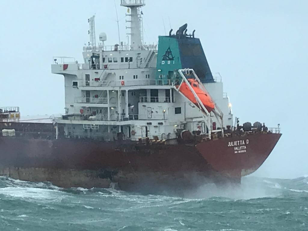 Late today, the Coastguard said that arrangements have been made with the owners of the bulker for a salvage crew to attempt to tow the drifting vessel. The Coastguard was preparing to airlift a crew back to the vessel to help to secure the towline. In the last update of the day, the Coastguard of the Netherlands reported that the salvage tug Sovereign has a tow connection with the Julietta D. They are waiting for calmer weather and daylight before the ship is towed to the port of Rotterdam.