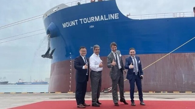 Australian mining giant BHP has welcomed the delivery of the Mt. Tourmaline, the world’s first LNG-fueled Newcastlemax bulk carrier. The new vessel, which will transport iron ore between Western Australia and Asia, is one of the five LNG-fueled Newcastlemax bulk carriers that BHP has chartered from Eastern Pacific Shipping (EPS) for five years.