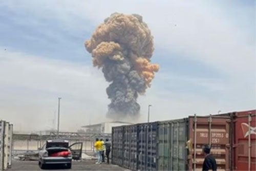 The explosion at Bandar Abbas Commercial Port on April 26 (Tasnim News Agency - CC by 4.0)