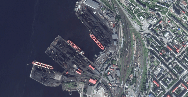Shipping, then, is naturally a major point of interest for Qingdao as the city expands both its port and its Arctic engagement. In 2013, Danish company Nordic Bulk Carriers shipped 70,000 tons of iron ore from Murmansk to Qingdao. It appears that the iron ore was produced near Murmansk at Russian company Eurochem’s Kovdorsky GOK mine. The Russian mine, the loading docks, and Qingdao’s massive ore stocks are all visible from space thanks to high-resolution, publicly available Google Earth imagery. Even the trucks and cranes handling the ore in the mine and ports, respectively, are visible.