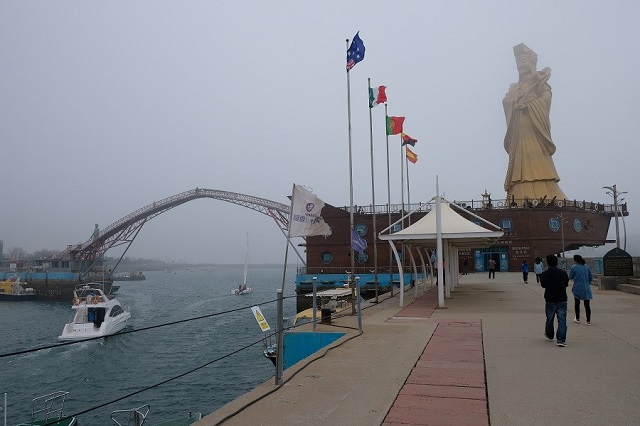 A statue of Mazu, goddess of the sea, at the Olympic sailing training facility in Qingdao.