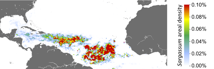 An unwelcome visitor is headed for Florida and the Caribbean: huge floating mats of sargassum, or free-floating brown seaweed. Nearly every year since 2011, sargassum has inundated Caribbean, Gulf of Mexico and Florida coastlines in warm months, peaking in June and July. This brown tide rots on the beach, driving away tourists, harming local fishing industries and requiring costly cleanups.