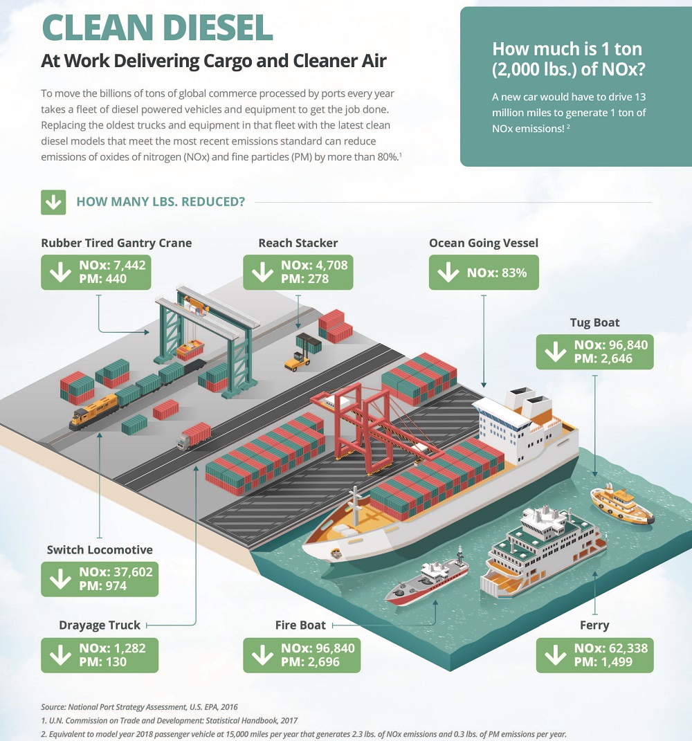 When it comes to reducing emissions from port operations, the abundant availability of the next generation of diesel technologies provides ports and their customers with easy access to the most cost-effective technology to reduce emissions quickly while also moving goods efficiently.