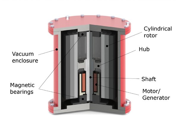 A flywheel will offer 50 times to over 80 times the usable life expectancy of improved traditional battery technology. The lithium-ion battery offers the advantage of higher energy storage capacity over improved traditional battery chemistry, with the flywheel being able to offer 15 to 25 times the usable life expectancy. Over the long term that involves many years of service where the flywheel is recharged up to 20 times per day, 7 days per week, carbon fiber flywheel technology becomes cost-competitive against lithium-ion technology in short-haul ferry vessel operation, including involving multiple flywheels per vessel to increase power output.