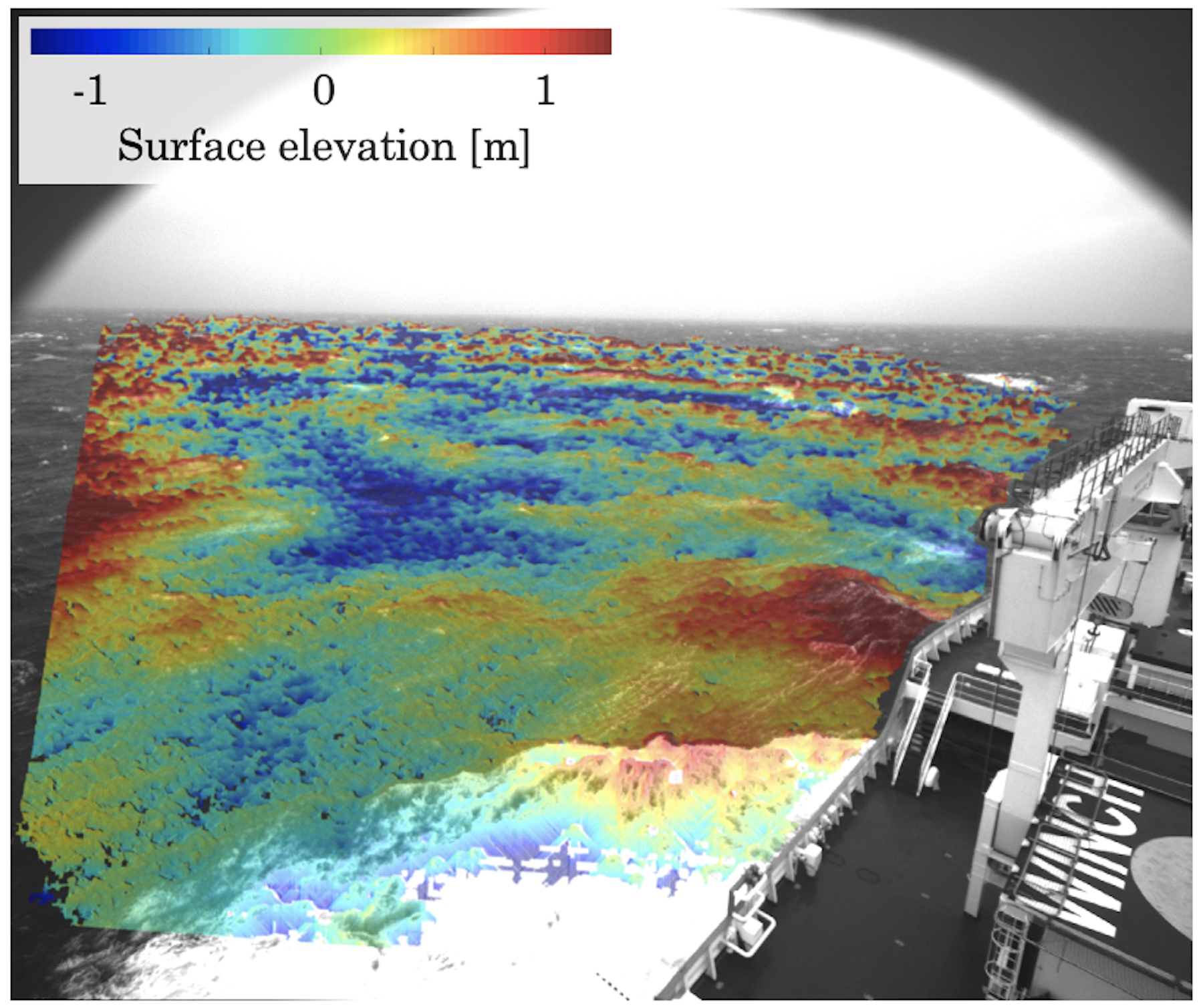 We used a new three-dimensional imaging method for scanning the ocean surface throughout the expedition. It mimics human vision: closely located sensors record sequences of simultaneous images. Computer algorithms then match pairs of them to reconstruct the three-dimensional depths – the wavy surface.