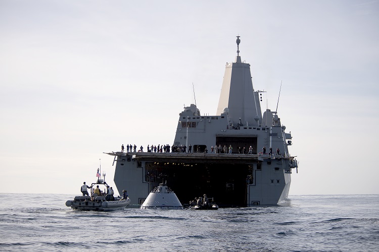 The U.S. Navy's amphibious transport dock USS Anchorage (LPD 23) successfully completed test recovery operations of NASA's Orion test article on January 23.